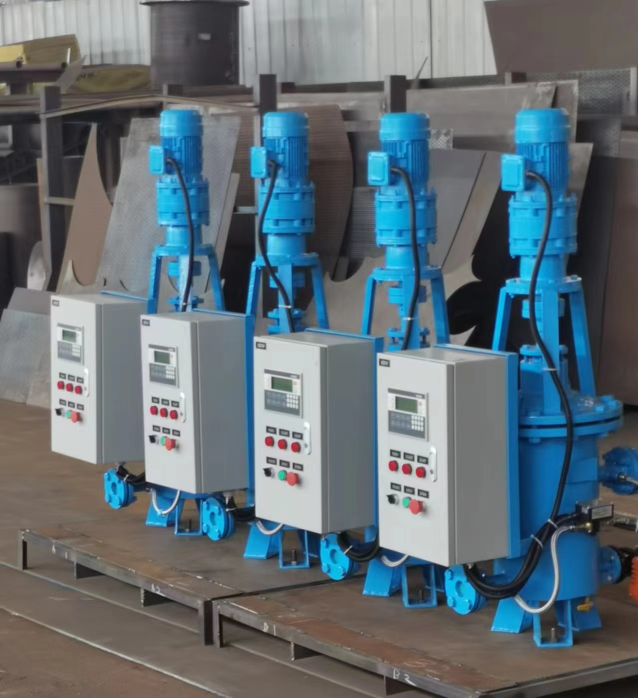 如用戶選型為電動濾水器,則當雜質聚積到一定數量時,利用冷卻水進出水管之間差壓信號來開啟電動排污閥,對附著在網芯內側壁面上的雜質污物反向沖洗,經由排污斗、排污管路和排污閥門排入冷卻水出水管中。排污斗步一進旋轉,依次對準球面網芯每一分格壁面,進行反沖洗。